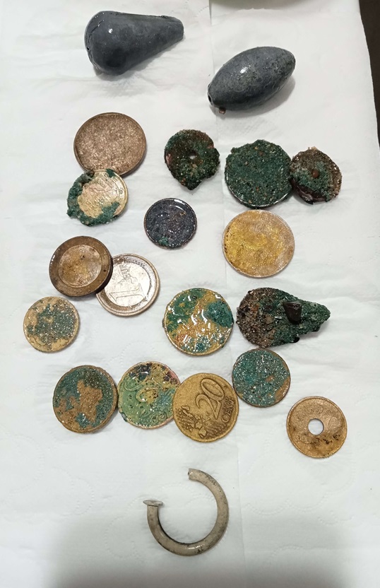 QUOTE(faradei @ Dec 10 2023, 18:38) На днях копал сигнал евро, 21 по шкале вди на 800, пару взмахов и появилась цепочка, думал что буде большой кулон, так как вди 21, но достал цепочку, а под ней был один евро! Так что повезло, думаю что если бы копал скубом, то не зацепил, сейчас решил нарезать зубья на скубе, так как не всегда плаваю с хуком! Всем удачи! за два сезона на зубья не попалось ничего кроме целлофана и пляжных трусов не знаю есть ли надобность портить изделие, эква и так цепочки видит, так что даже если что то и упадет в воду то всегда можно поднять, лучше мелкую сетку на дно скупа положить чтоб мелочевка не пролетала -------------------- Самое прекрасное в поиске - это сам поиск !