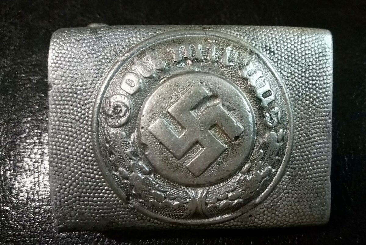 Вообще то это наша история ....Пряга полицейская и найдена на месте базирования партизанского отряда.Походу вражина где то там до сих пор лежит. Взяли его в плен и вытресли из штанов .
