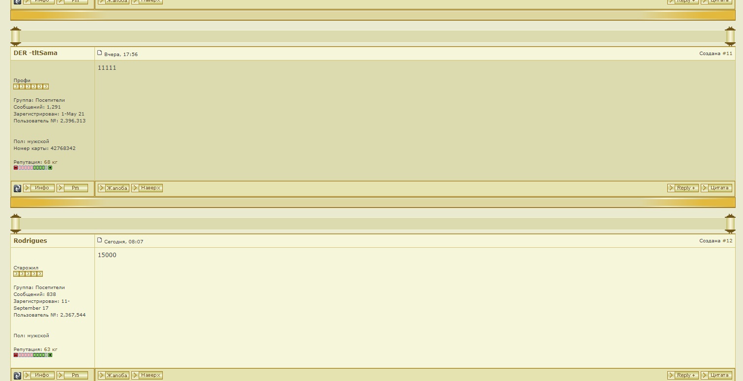 Профи ![]() ![]() ![]() ![]() ![]() ![]() Группа: Продавцы Сообщений: 3,740 Зарегистрирован: 18-December 08 Из: Урал Пользователь №: 7,057 Пол: мужской Номер карты: 4276160028968700 Репутация: 3625 кг |
