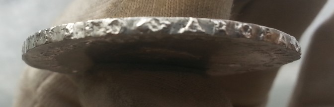 жуть какая...какой-то извращенец-нумизмат-самоучка вдоволь покуражился, а так да-облезлая, подгнившая, нашлифованная и наполированная монета