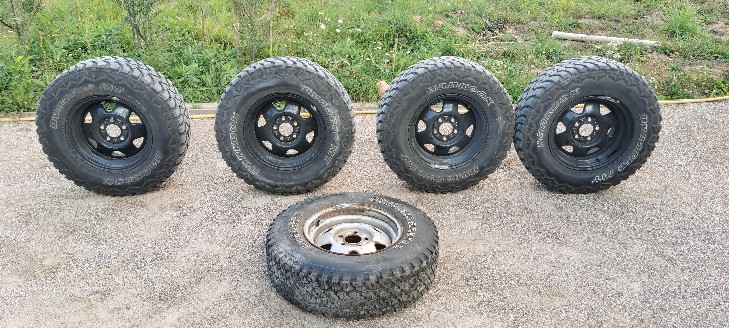 Продаю 5 (прописью: пять) колёс в сборе на джип чероки серий XJ, ZJ или рэнглэр серий TJ, YJ. Разболтовка: 5x114.3, вылет: 30, диаметр ступицы (ЦО) 71.6 мм. Диски с ренжа, штамповка покрашенная в чОрный цвет, плюс стандартный диск с запаски от джипа, такой же, но некрашенный. Рэзина Hankook Dynapro MT, 4 баллона, 235/75R15. Резина ханкук качественная, но по факту - злая АТ-шка. Для мудов "добрый" рисунок протектора, тихая, не бьёт, хорошо держит дорогу. Для режима экспедиционника, трасса + умеренные говнолины самое то. На запаску натянута такого же размера AT Hankook dynamic radial. Самовывозить из г. Переславль-Залесский (МО, ярославкое шоссе). Вышлю ТК, предпочтительно Энергия. Цена видится 37 тыр, за все. Продаётся чохом, дерибанить неинтересно. +7 9I6 З77 I8 З9. Стучаться в личку тут или в мессенджеры, не всегда удобно взять трубку. Сообщение отредактировано jukich: Feb 16 2023, 20:54 Вложенные эскизы изображений -------------------- ...как и многие другие, я стал раздолбаем и алкашом. Но танки люблю до сих пор. Чего и вам желаю. ©