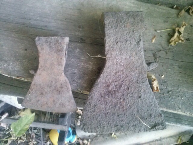 Здравствуйте, сегодня забежал ненадолго на один огород, и буквально за полчаса, нашёл копейку 1901, копейку 1931, две копейки 1817, копейку 1965, две пуговицы, и одну конину, потом кончился аккамулятор, и я ушёл домой, некоторые находки, почемуто никогда не показывал, несчитал нужным, вот например два топора.