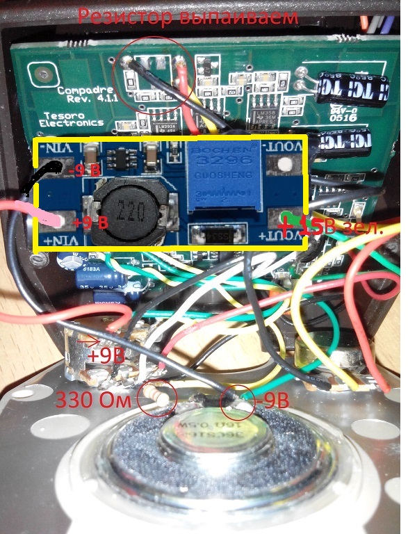 QUOTE(xxO @ Apr 19 2017, 11:39) Это заводской черный провод идет на резистор регулировки дискриминации. На преобразователь идет только один черный -9В провод с тумблера, я уже писал. из того что Вы писали, никто ничего не понял. Я правильно понимаю что к китайской плате подходят 2 провода -9 и +9, а выходит только один +15???????????????? Зы на моем приборе того черного провода на дискриминатор нет |