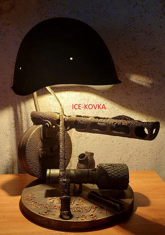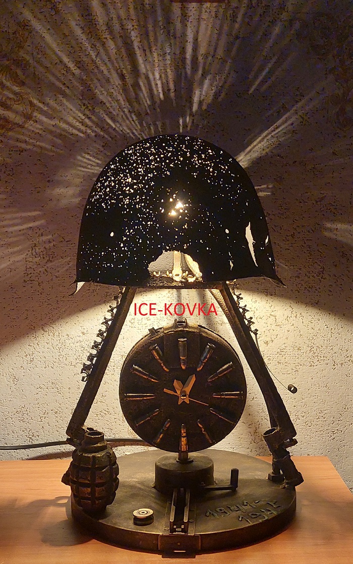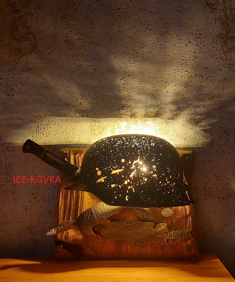 светильник с советской каской и тумблером.светильник из немецкой каски -1943.и светильник из советской каски и звеньями -выбыли!
