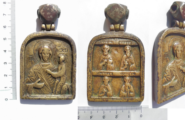 QUOTE(Калинин @ Apr 14 2023, 15:39) А с какой стороны (с какой грани, торца) 3 дырки и с какой - одна: сверху, снизу, сбоку?... На цену это не повлияет, просто хочется понять. ИМХО. Это створа складня двойки. Очень ранней отливки. В основе новгородская резьба(камень,кость,дерево) именно коробчатый складень двойка. Позже из створ стали лить самостоятельные иконы. А дырки предположительно какой то вариант крепления створ. Вот переливок от второй створы.... http://mednolit.ru/photo/439-0-6324-3?1682073399 |