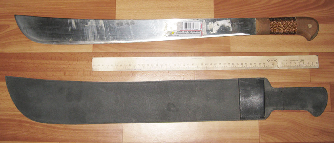 А у меня до метра маленько недотягивает всего70см.Можна и кабана пополам разрубить.Не говоря уже о большой траве в ямках от домов.А осинку в 7см. в один мах как в масло.Вожу в машине хотя есть крепление на ремеь поясной.Этикетку трамонтино спецом не стал удалять так -как на постах гайцы могут до-тся.А так цена и купил в магазине.Удобная штука.