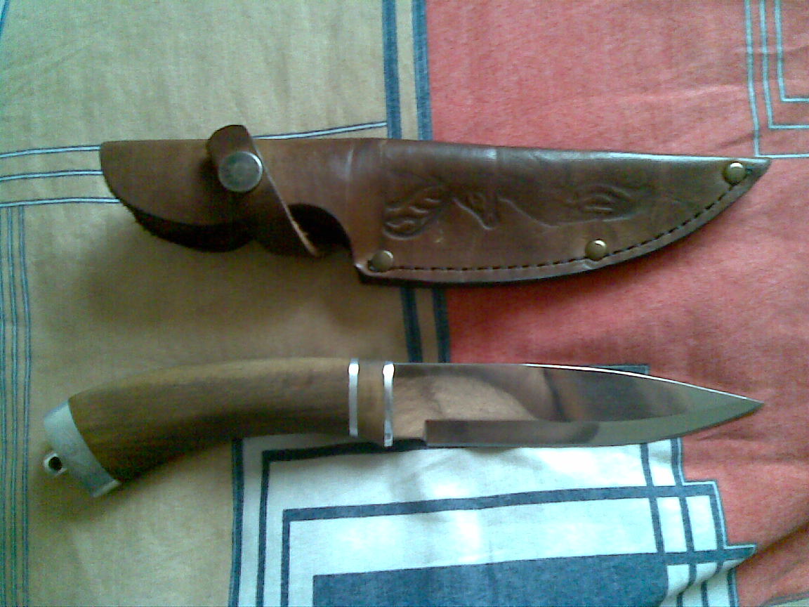 На охоте этот со мной- подарок златоустовских коллег. Длинноват конечно. Сталь хорошая.Постоянно из машины в машину. Поэтому для удобства привязываю его к ремню справа на крепкую тесьму, чтобы свободно болтался. А так нравятся обычные складешки без наворотов.