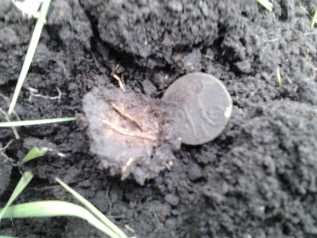 Поначалу фотал монеты выкопанные в лунке ...затем бросил это дело . Монеты интересного оттенка , когда только-только появляются на свет , прям выглядят почти жёлто-красного цвета , такие контрастные .Затем преображаются на воздухе , делая почти неприглядный вид .