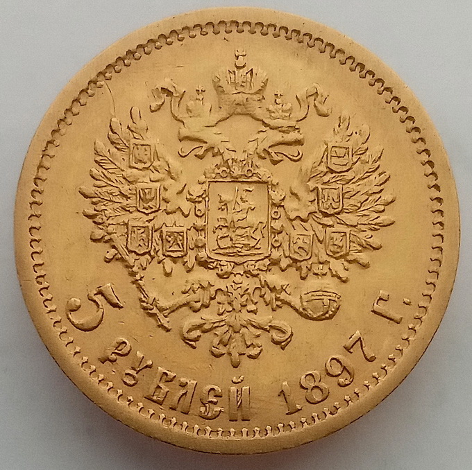 Монета 5 рублей 1897г АГ.