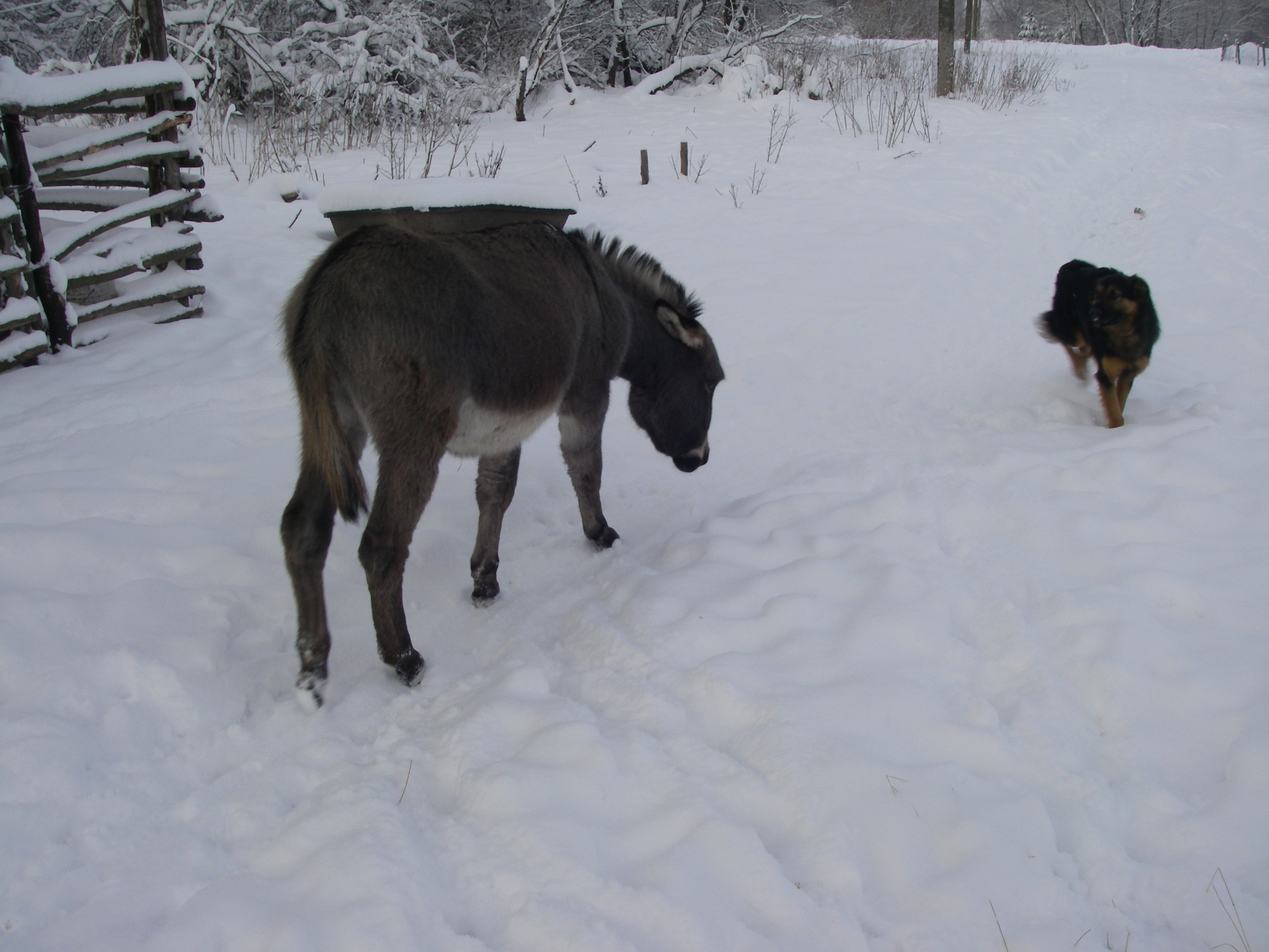 QUOTE(Чёрный скат @ Dec 29 2025, 22:41) Давайте лучше свежих фоток Сененых да и рассказ в вашем стиле за него приветствуется. Вчера только утром инет был, а потом вырубили его на сутки. Поэтому только сёня фотки Сени выкладываю, а не вчера, как обещал. Чувачок возмужал, окреп, поумнел, но хулиганить всё равно любит. Особенно подкрасться по-тихому сзади и попытаться прикусить за одежду или даже на дыбы встать и передними копытами на плечи опуститься. Вроде и страшно, но одновременно и смешно. Если уши вдруг внезапно прижал (как на фото с пёселем), значит задумал какую-то подлянку или хитрость, типа толкнуть человечка своей толстой жопой, или от одежды какую-нить бирюльку-висюльку оторвать, либо нагло истребовать хлебушка или печеньку у людишек, а иначе лёгкий кусь обеспечен. Любит этот чудик палки во рту таскать, пакеты, пластиковые бутыли и т.д... схватит полторашку из-под пива и давай ходить с ней и головой из стороны в сторону мотать, как оглашенный. Малой он ещё, развлекухи и игрушек требует. Вон, на фото какую-то ветку схватил и тащит её куда-то с умным видом... Друг Бася тоже рядом с Сеней всегда трётся и играть его зазывает без устали. А на последней фотке - такую морду Сеня всегда делает, когда просит сухарика, печеньку, яблочко, ну или любое другое лакомство. И выражение всегда такое мол "Есть чего вкусного? А если найду"? И хрен отмажешься, иначе обидится, приходится всегда носить с собой полкармана разных хлебобулочных изделий или яблок. Запарился уже крошки вытряхать из карманов. Эта прошаренная морда уже давно догнал, как можно развести людишек, которые души в нём не чают, на печеньки с плюшками. С разумом в этой лохматой башке всё отлично, несмотря на то что ослов считают тупыми. Хотя, иногда и по мордасам получает за косяки или излишнюю наглость, что тоже ума ему неплохо прибавляет. -------------------- Ишь ты...
