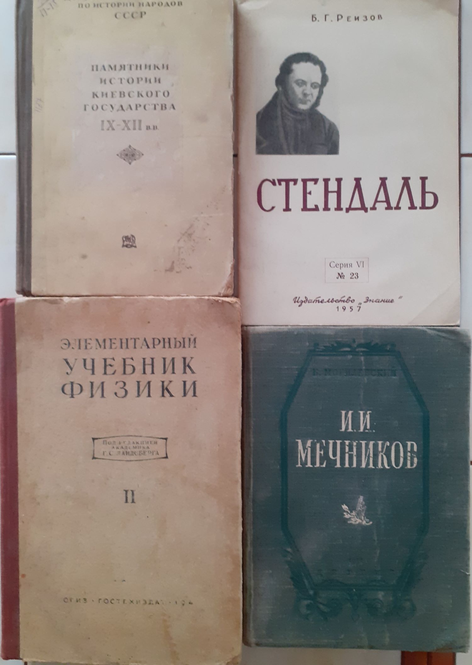 Памятники истории Киевского государства IX-XII вв. 1936 г. 218 с. Твердый переплет. Штамп. Элементарный учебник физики. Т.2. Электричество-магнетизм. 1949 г. 346 с. Твердый переплет. Штамп. Б.Г. Рензов. Стендаль. 1957 г. 32 с. Обложка. Штамп. Б. Могилевский. И.И. Мечников. 1960 г. 286 с. Твердый переплет. Штамп. Стоимость любой 100 рублей. Вложенные эскизы изображений |