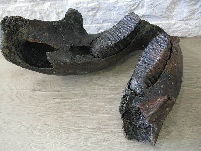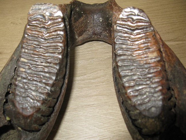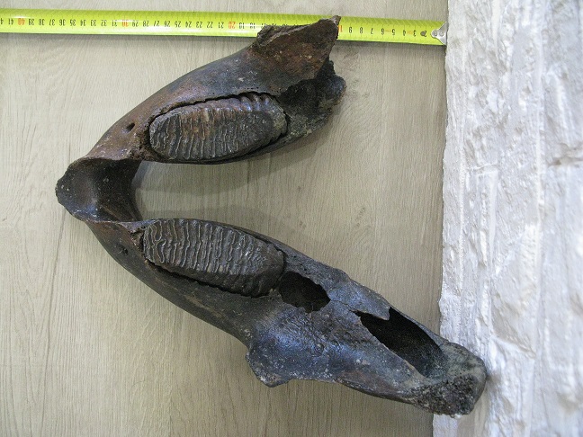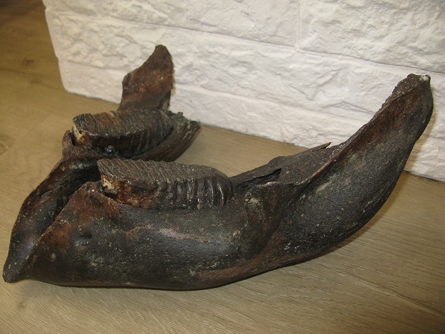 Нижняя челюсть шерстистого мамонта. Кость стабильна, обработана раствором клея ПВА. Цена 35000 р.