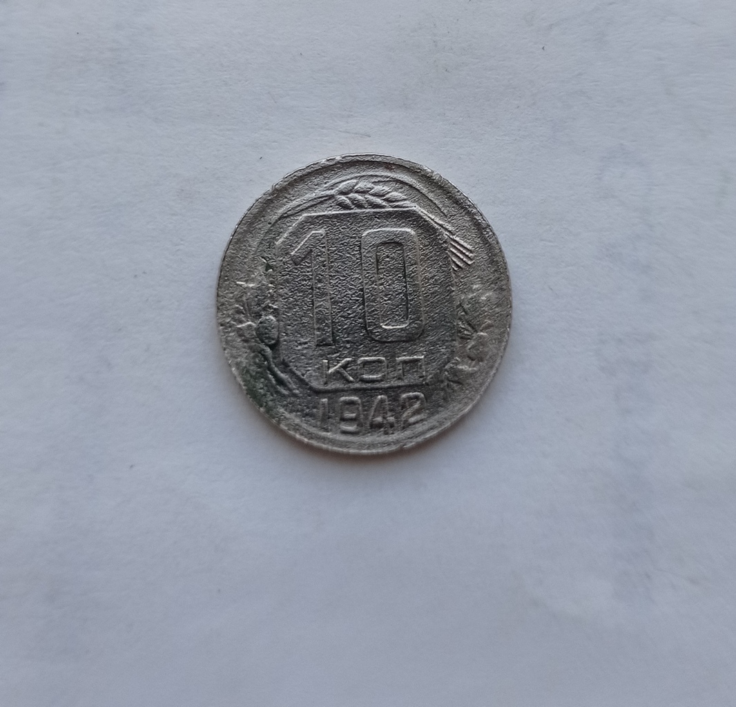 Предложу вашему вниманию монету 10 копеек 1942 года,монета из воды,поэтому состояние ее такое,ну сами видите,может кому и пригодится,"дырку"в альбоме закрыть,поэтому