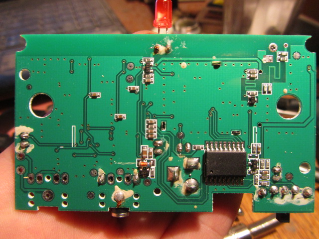 Фотки не очень. Что понятно - на 2 фото слева деталь с маркировкой 78L05, это стабилизатор на 5 вольт. То есть есть вероятность подать на схему после него 5 вольт или меньше и всё будет работать (в автомобильных ФМ-трансмиттерах работает и от 3,7 вольт, то есть от 1 литиевого аккума)
