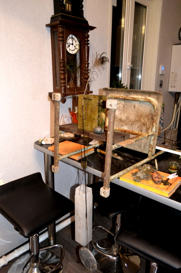 Обычный 95 подойдет думаю?А если все-таки не разбирать,а отмочить в бензине с ацетоном вместе его неделю и пото продуть и просушить не разбирая?Пружины я спустил конечно,сразу же,это несложно.Я не боюсь разбирать,просто какой смысл,если они не сильно в грязи,они просто в пыли,хотя помню этот мех в каком черном солидоле он был вначале...Мне бы деревом заняться.Почитал ваши темы,увидел все ваши работы,ну красота что еще сказать...Тоже подумал сначала весь шпон снять да новым полностью уклеить их.А потом передумал категорически.Не будет той старины,ну хоть убей не будет.Да красиво,да все ровно,но нет того духа времени(ваши работы супер,прошу не обижаться ни в коем случае!!!).А тут и кривенько даже где-то,углышек немного подмят,трещины эти настоящие,честные,от веков...Дух многое значит.А издалека они смотреться будут супер конечно!Но стоит подойти и присмотреться..класс,настоящие.Это как картина.Издалека как фотография,а вблизи миллионы мазков,вроде грубых.Ну вот такой вот я,люблю все настоящее.Стенка задняя лопнула там сильно,доски выпуклые стали,выгнуло их...Вроде бы сухие как кость,веса нет,а ведь надо же,выгнулись и шпон лопнул!Как лечить не знаю,утюгом прямо боюсь испортить,да и крепить потом надо будет чтоб назад не пошло.Думаю трещину собрать и все потом лаком акриловым с матовой добавкой покрыть.Резьба деревянная вся хорошо целая,только одного бокового плинтуса нет,кусочка штапика на стекле сбоку и шахматы одной на короне и все.Циферблат целый,тоже боюсь трогать его,лаком тут хотели,да тоже боятся трещинами пойдет,вот думаю.А стена ждет часы давно,два профиля заложил специально под них,стена идеальная по уровню.Даже шторы покупаем под цвет часов,обязательно должны пойти и получиться!