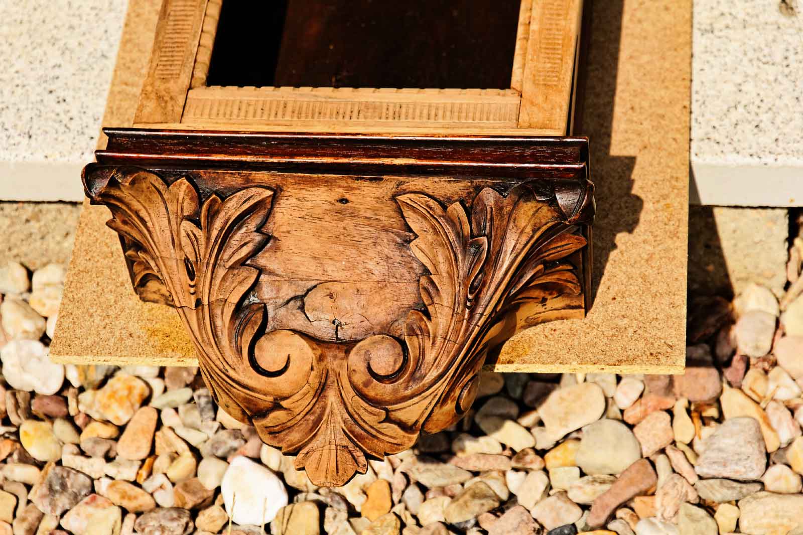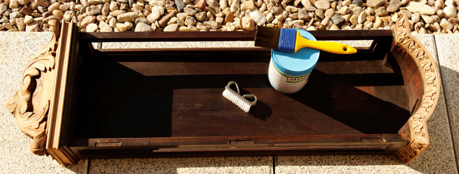 QUOTE(Копша @ Aug 3 2014, 22:48) Ацетон, не панацея, более эффективна смывка диметилформамидом (в проветриваемом помещении и только в резиновых перчатках). Мех и стекла естественно снять. Диметилформамидом не нашёл, нашёл другую беду - здесь это завется Lacostan. Щелочной гель, по виду как карамель, наносится синтетической кистью и через 30 минут можно смывать. Смывается водой. Потом надо еще нейтрализовать уксусом, но я смываю хорошо, надеюсь нейтрализации не потребуется. Достижения на фотках. С плоских поверхностей снимается легко, с резных украшений тяжелее. Смывается вместе со старым лаком как одна темная масса - никакого шелушения и отскакивания. Процесс похож на мойку от застаревшей маслянной грязи поэтому немного утомительный - надо постоянно споласкивать то чем смываешь. Но как говориться глаза бояться а руки делают. Корпус полностью разобрать не удалось (пока). Шурупы с задней стенки отвинтил, но вверху и внизу стенка почему-то густо утыкана гвоздями, забитыми на всю немецкую совесть - под шляпку. Метал черный, старый, шляпки легко ломаються, да и дерево царапается и прогинается в местах приложения железных инструментов. Так что пока ищу варианты. С другой стороны зачем его разбирать если и так всё смывается? Проявилось много трещинок и маленьких дефектов (поломок) которые были не заметны на жутком темно-буро-коричневом фоне прежней покраски. Вот думаю стоих их (трещинки) чем-либо замазывать (чем?) или оставить так как свидетельство "антиквариатности"? Пока всё. Вложенные эскизы изображений |