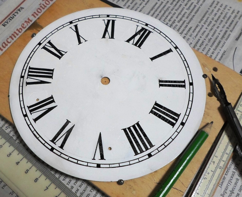 QUOTE(abkbn @ Jan 13 2023, 17:29) Вот что получилось Вобщем, с товарищем решили оставить как есть. Тушь после просушки покрылась мелкими трещинками, как на старых циферблатах. Покрыл циферблат сверху в один слой жиденьким лаком ПФ, для закрепления и циферблат получил слегка жёлтый оттенок. Что придаёт ему состаренный вид. В своих архивах нашёл скопированные в своё время где то в сети рисунки циферблатов, может кому пригодится. Сам хочу попробовать наклеить на белый картон и тоже зажелтить слоем лака. У меня были часы с фабричным картонным циферблатом и с надписью "Ле Рой де Пари". Вложенные эскизы изображений |