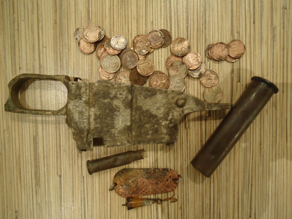 реки, интересней всего в городе с мостов, за городом естественно победнее, но патроны есть везде, как пробки)), кортик в центре был, ночью искал, пока народу поменьше. С одного моста 2 велосипеда вытянул и каляску игрушечную, посмеялись и на следующий пошли, под теми которые ремонтировали основательно предполагаю что делать нечего, щебень и мусор строительный. В колодцах в основном голяки, гирьку можно вытащить либо еще какой утяжелитель с ведра, ведра и крышки в изобилии