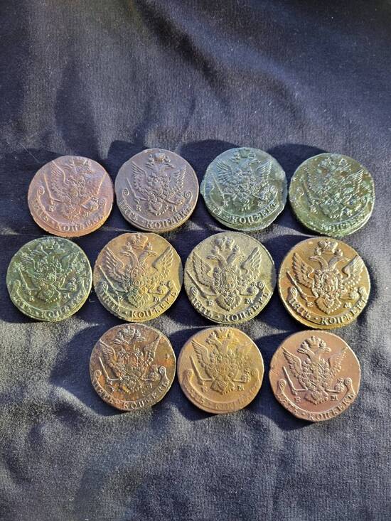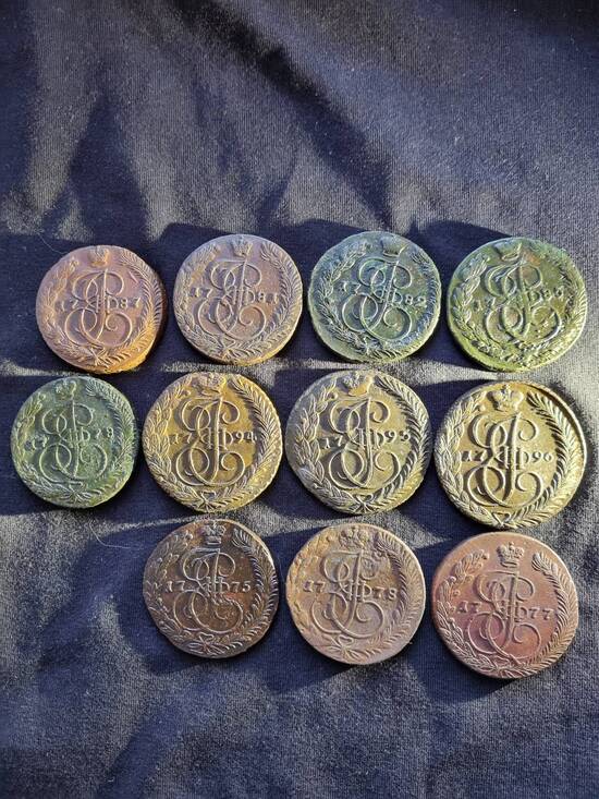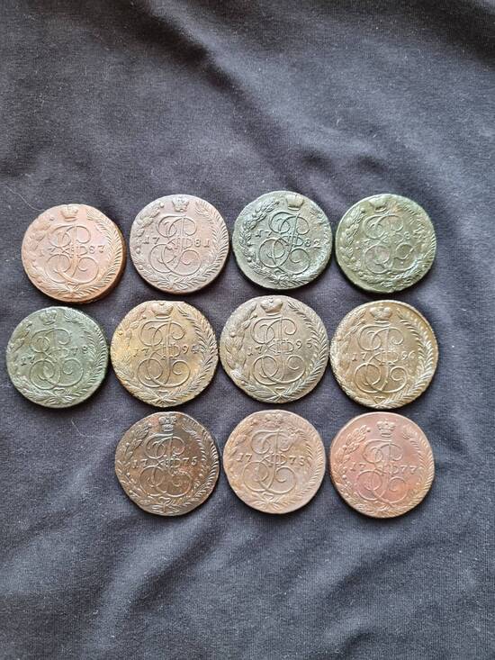 Предлагаю Вашему вниманию 11 пятаков Екатерины Второй. Состояние монет на фото. Старт 100 рублей Шаг от 100 рублей Антиснайпер 10 мин многократно Окончание 26 сентября в 22-00 по МСК Пересылка только почтой России только по РФ +600 рублей на покупателе. Оплата на карту Т-Банк 1934 в течении трех суток . Вложенные эскизы изображений -------------------- Если я выиграл Ваш лот, сообщите в личку.
