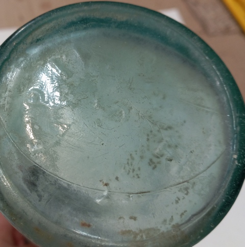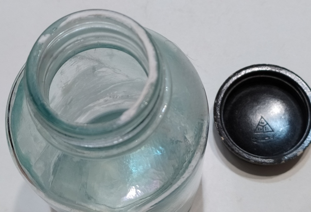 Всем добрый вечер! Шурфился домик, сначало попадалась керамика и стекло до военного и военного периода, там же попалось два пузыря вроде после военного, подскажите по ним, в интернете на удивление ничего не нашёл. Один с крышкой, второй без, но по фактуре похоже тоже самое.