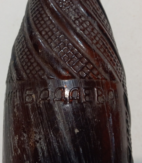 QUOTE(zemlyanin @ Dec 4 2024, 20:18) №5: оцените бутылочку в таком состоянии: трещин, сколов нет, но присутствуют следы потёртостей. Клеймо на донышке, пока не разобрал, так понимаю это 50-е годы, из под пива? Похожие современные витые зелёные встречал, на эту сразу и не обратил внимания. Пиво. Встречается с этикетом "Двойное Золотое". |