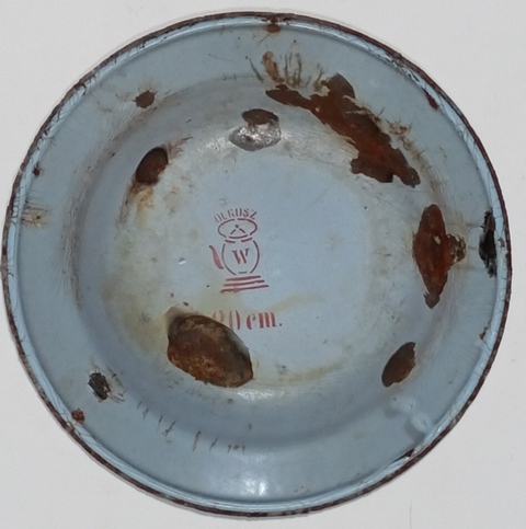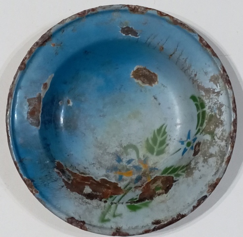 38: вот такая эмалированная тарелка, диаметр 20 мм. Лежит давно, хочется тоже, что нибудь о ней узнать: какого периода, наша или немецкая. Найдена была на хуторе, где во время войны стояли немцы, в начале 43 он был сожжён. Но после войны немного отстроился и там ещё жили до 70-х годов