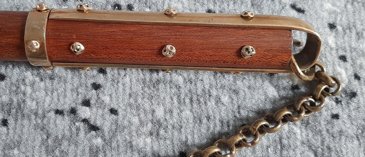 Получилось красиво, но кольцо на конце рукояти явно лишнее. Лучше кожей обернуть ту часть, которая будет удерживаться рукой. И не забывайте, что у вас ударно-дробящее холодное оружие.