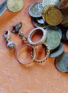 Летом копал чешую со штатной 11", думал уже всё, больше ничего нет. Затем решил ещё раз пройтись по тому же месту с 15х12". Результат порадовал. Там, где вроде ничего не было, появились полушки с птичкой.