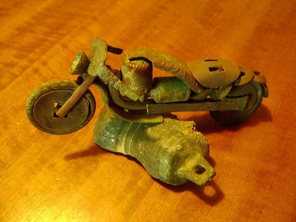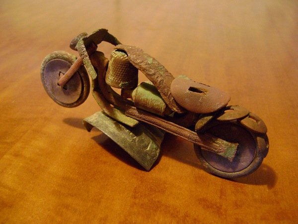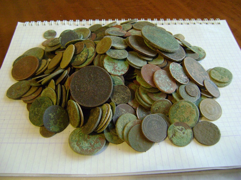 Тоже как то по осени решил сваять что-нибудь из накопанного шмурдяка. В состав изделия вошли два какалика 3 коп Н1 и масонский гривенник, украшение спинки кровати, подставка под ручку на крышке самовара, накладка от дверной ручки и вообще неопознанная медяшка. И вот что из этого получилось.