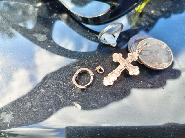 QUOTE(Чёрный скат @ Jul 14 2025, 13:06) Ну так, а чем тут заняться. Тепло только третий день. Как у нас это лето задолось так ты на юге можно сказать. Пол дня по дну отползал так моне и тех нету. Вода знатно по осени была просела так всё подчистили фулиганы. Я был утром в двух местах. Нашел колечко, 925 Встретил "коллегу'. Таких друзей- за хер , да в музей! Лунки не закапывает, а найденный мусор бросает рядом! Одно слово-кетай Сообщение отредактировано handyman: Jul 15 2025, 19:44 Вложенные эскизы изображений -------------------- Кто рано встает, тот все заберет!