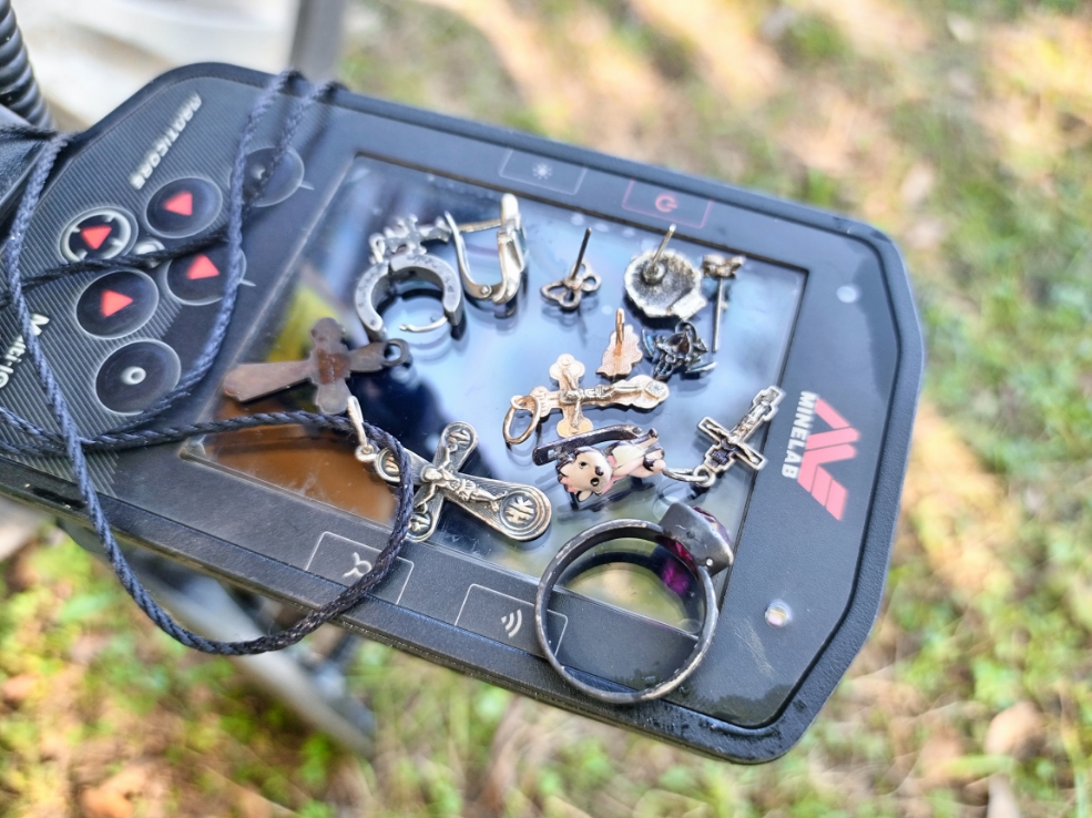 Реалии современного поиска пару золотинок с двух крупных водоемов мусора практически нет серебра тоже , только пульки от пневматики скучать не дают пролетают в дырку скуба задолбают, я последнее время принаровился в маске хожу, харю в воду опустил ага гребаная пульки или грузик можно время не терять и дальше чесать