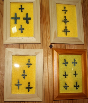 Я кресты храню и экспонирую в рамках на фоне из желтого флиса с мягкой подкладкой. Кресты ничем не крепятся, просто утапливаются в подкладку. Удобно демонстрировать друзьям и любоваться самому. Вот фото нескольких рамок. Более поздние не фоткал. Сообщение отредактировано zinalex: Aug 1 2012, 22:59 Вложенные эскизы изображений -------------------- Love one another
