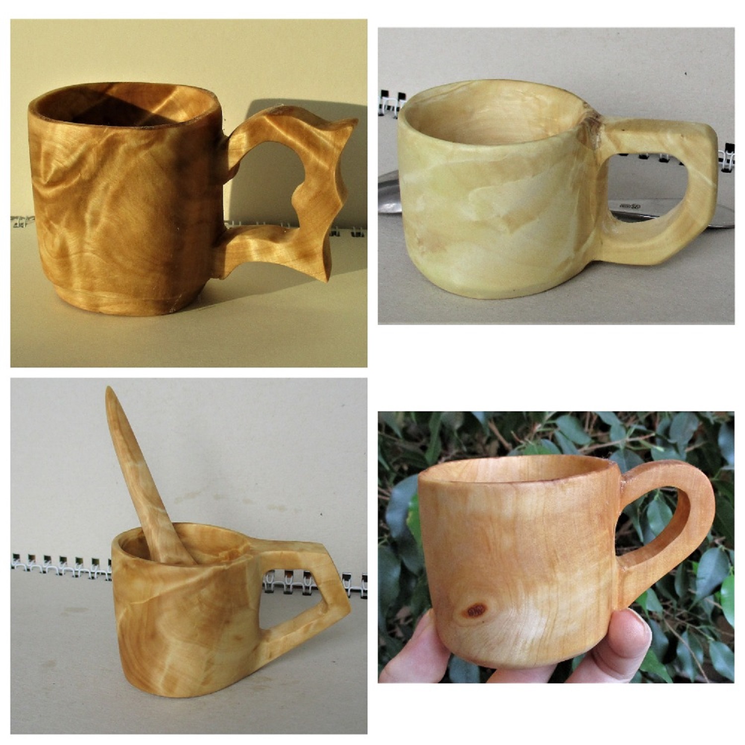 Следующим этапом после изготовления "посуды" из чаш и тарелок стало изготовления чашек и ложек. Конечно изготовление чашек гораздо трудоемче, но интересно.