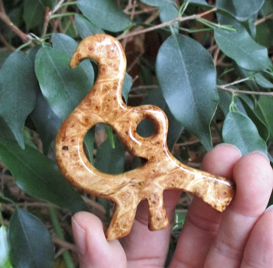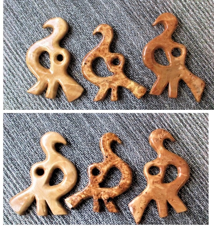 В процессе остается много обрезков которые выбрасывать жалко. Конечно я делал мелкие миниатюры которых полно в сети, типа подвесок, кулонов и тп. Эти темы я коммуниздил и копировал. Хотя пробовал делать свое на тему древности, подвески типа лунниц, но что то не очень мне понравилось. Дело в том, что структура материала подходит не ко всему, да и фактура сувели и капа теряется при вырезании мелких деталей.