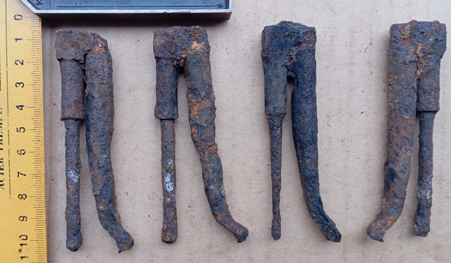 QUOTE(zemlyanin @ Nov 21 2025, 21:42) №79: Вот такие штучки, к сожалению, совсем ушатанные, хотя одну разработал товарищ (на фото нет). Рядом ручей тёк и весной всё заполняется каждый год, материала много интересного, но почти весь в таком состоянии, кроме цветушек. Что это было? ПОхоже на извлекатель порванных гильз из пулеметного ЗИПа |