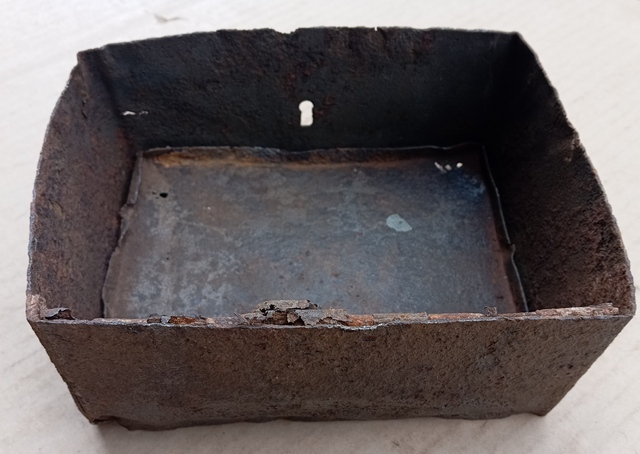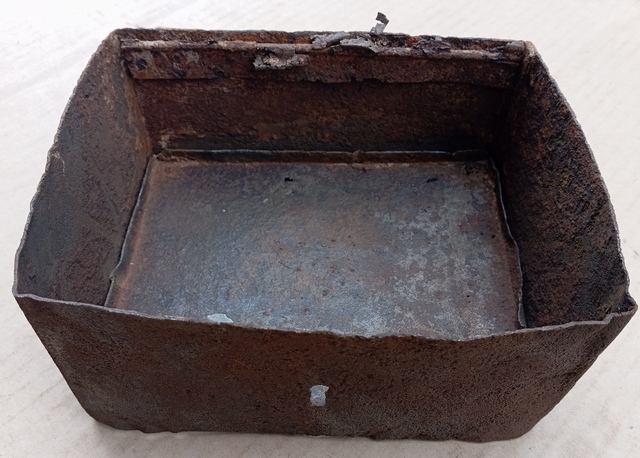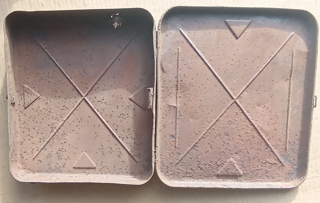 Несколько ящиков лежат в гараже, хотелось бы уточнить от чего №135 из блиндажа рядом с техническим капониром был поднят, сплющенный, деформированный, но крепкий. Кое как отрихтовал, в "квадратное" положение привёл, при этом дно конечно выскочило, да и крышка оторвалась, была вся в пробоинах, скинул в металл, а коробку оставил. Видится, что изнутри был накладной замок, подскажите, для чего мог быть предназначен такой ящик? Размер 20/15/9 см Вложенные эскизы изображений |