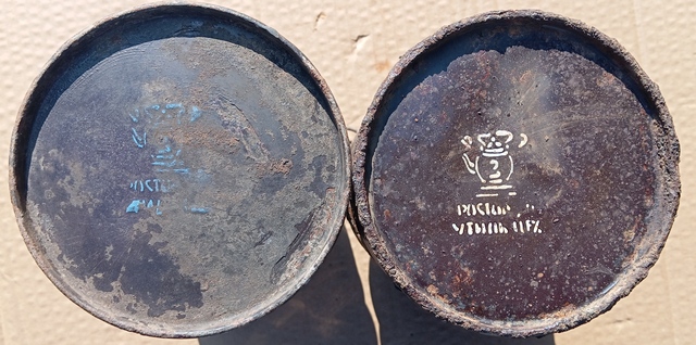 QUOTE(zemlyanin @ Jun 11 2025, 21:24) №214: два эмалированных до военных польских бидончика (вероятно с собой притащили), один целый-300, второй с дырами - 100+ пересыл. На донцах клейма синего и белого цвета. Бидоны советские, клейма завода "Эмальпосуда" (г. Ростов-на-Дону). Сообщение отредактировано Alexander_N: Jun 12 2025, 06:52 Вложенные эскизы изображений |