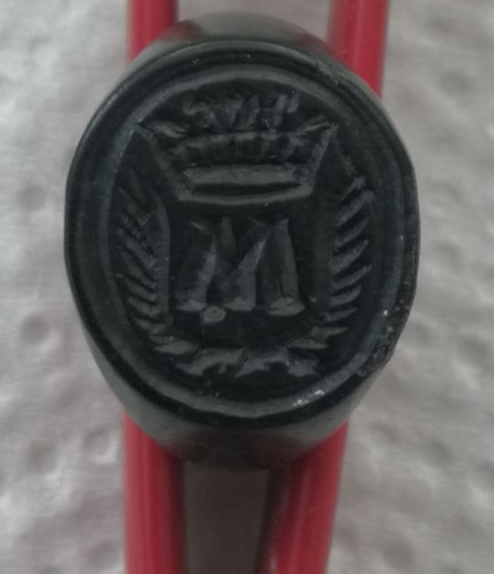 там нет герба. просто монограмма "М". скорее всего 18 век. корона невнятная, но скорее всего дворянская. То есть некий Михаил-Мишель-Мигель и т.д., включая ...Мойшу.