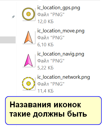 У locus map слабо заметный синий курсор. есть возможность заменить на более яркий, смотри архив. 1. Запаковать в архив ZIP без сжатия, с названием "myIcons.zip" и кидать архивный файл в указанные папки на смартфоне (два места) каталог: Locus/icons/cursors/ где выбрать: Настройки локуса > Управление > Экран карты > Курсоры карты содержимое: myIcons.zip каталог: Locus/icons/navigation/ где выбрать: Настройки Locus > Навигация > Расширенные настройки > Курсоры навигации 2. выбрать курсоры в настройках программы (там в двух местах есть опция в настройках) пробегитесь по настройкам - там найдете, я давно делал, забыл уже. Сообщение отредактировано digger_: May 16 2025, 19:52 Вложенные эскизы изображений Вложенные изображения -------------------- И я там был - катушкой водил.