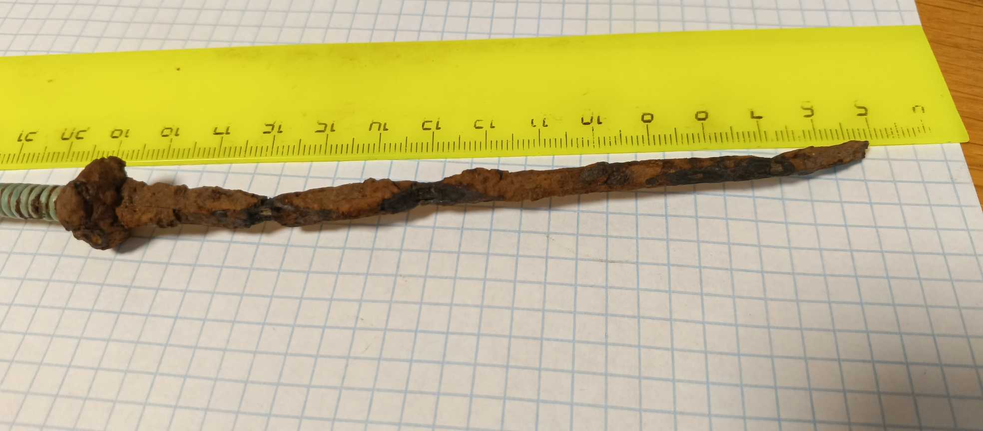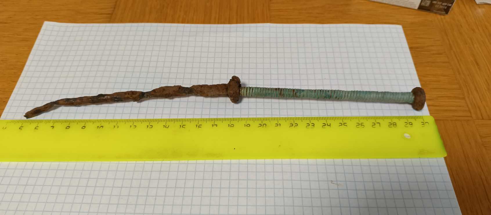 QUOTE(dzhiburhan @ May 20 2025, 19:24) Доброго времени суток Вам. Вот такое попалось, для шила слишком длинное, заточка или кортик , что это может быть. И так описание длина в данный момент 25 см. Когда выкопал остриё примерно сантиметров 5-7 отвалилось, к сожалению утрачено. Жало вижу , что кованное железо, рукоять похоже бронза в очень приятной патине. По сопутке начиная от РЖВ , акинаки , бронзовые топоры. Территориально Лес Белгородской области. извините , но вот мне у###### видится проколка для квашения капусты а ручка обмотана проволокой с обмотки стартера примерно второй половины 20-го века. чисто мое имхо. -------------------- Друзья,новая тема! адрес: Поисковая техника, оборудование, аксессуары.. ->промышленные изыскания .