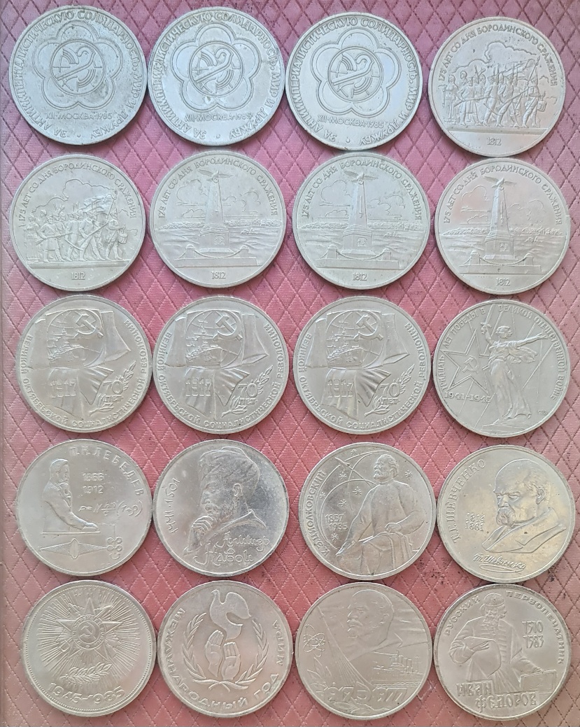 Предлагаю следующие монеты из оборота: Факел - 75 ₽/шт. Бородино колонна - 125 ₽/шт, ополченцы- 130 ₽/шт. 1 р. 70 лет СССР -150 ₽/шт. 30 лет победы- 70 ₽. Лебедев, Навои, Циолковский, Шевченко- 165 ₽/шт. 40 лет Победы- 100 ₽. Год Мира - 120 ₽ 60 лет СССР - 135 ₽/шт Федоров - 500 ₽. Почта на покупателе. Вложенные эскизы изображений |
