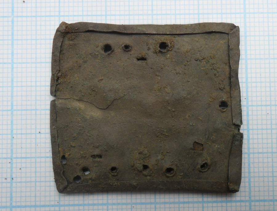 С металлом пластины определитесь, посмотрите с тыльной стороны на загнутых краях цвет, чтобы не лишить предмет патины и аутентичного вида. |