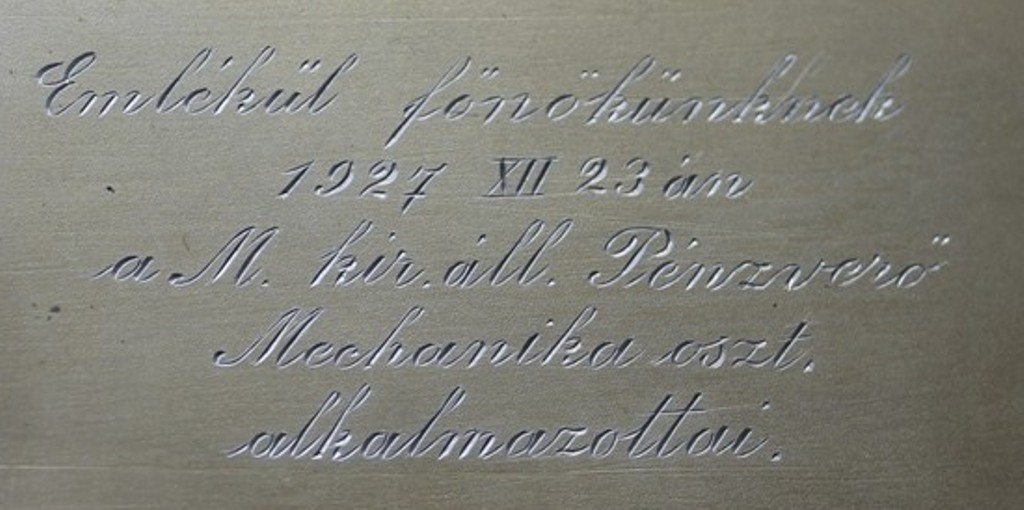На предмете нет герба, от слова совсем и значит делать ему в этой теме нечего. Есть монограмма владельца: MV или VM. Практически не определяема. Дарственную надпись можете переписать в Яндекс или Гугл переводчик. -------------------- No comment