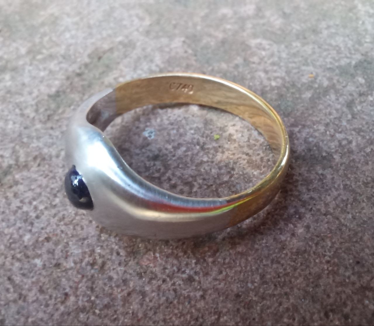 Одна половина золотая, а вторая серебряная? очень интересно. По поводу маркировки, такая мне не известна, 740 на пробу не тянет, таких ходовых нет ни в золоте ни в серебре и тем более платине или палладии.