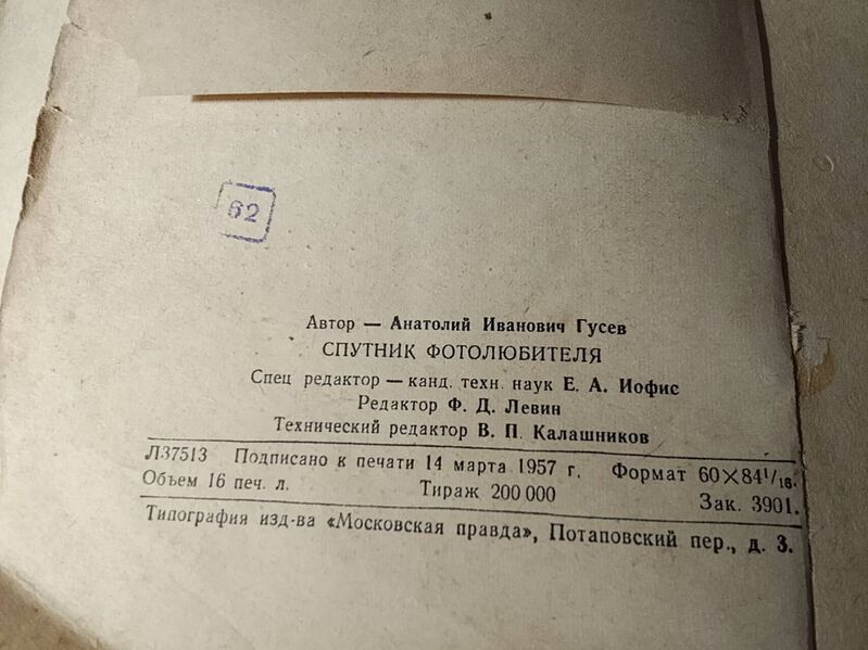 - Тираж 200 тысяч, 238стр. Автор А. И. Гусев. - Есть полное описание как сделать правильно снимок. - Описание Советской фототехники, ФЭД, ЗЕНИТ, КИЕВ. итд. - Таблицы,описание, статьи по настройке фото, проявке и печатка фото. - На книжке стоит Советская не денаминированная цена 5руб 60коп. - Состояние хорошее, но есть не значительные следы времени. Продам 450 руб + дорога по тарифу почты на карту сбербанка. Территориально Иваново. После отправки предоставлю фото чека сколько вышла доставка. Вложенные эскизы изображений -------------------- Будьте добры друг к другу.