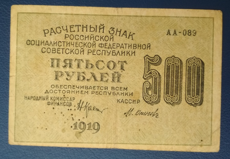 15. 500 рублей, 1919 год.