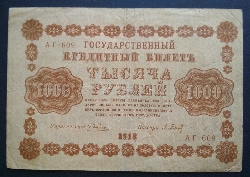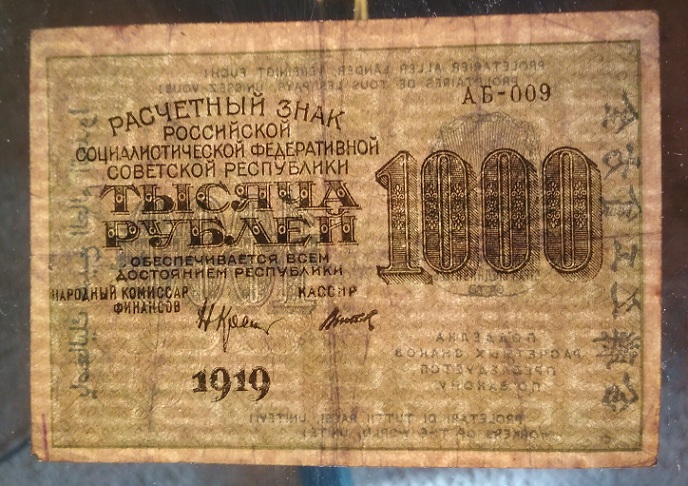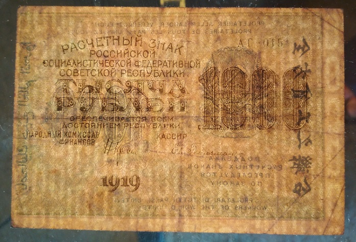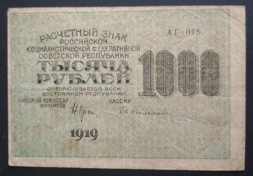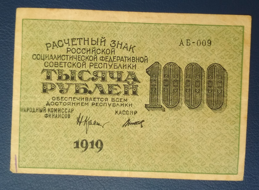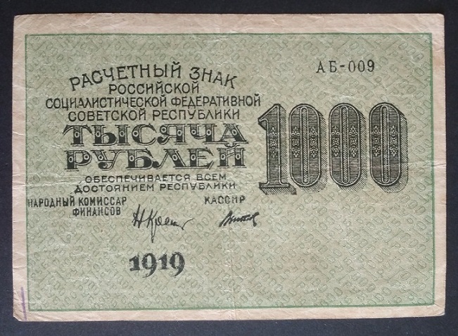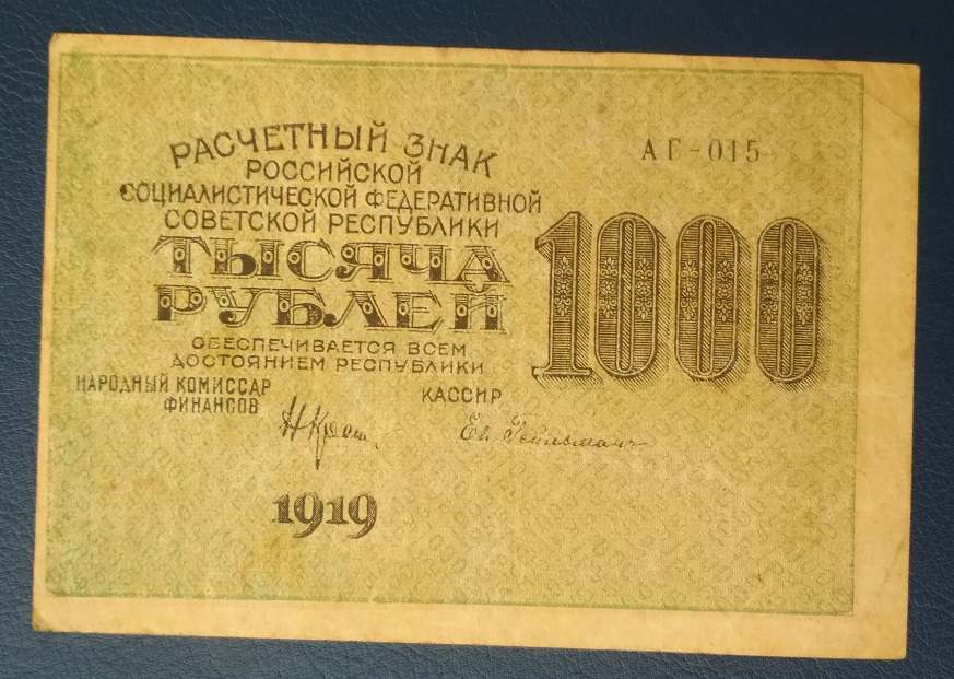 16а. 1000 рублей, 1919 год. Вполне подойдет положить в альбом Вложенные эскизы изображений -------------------- ! Z !
