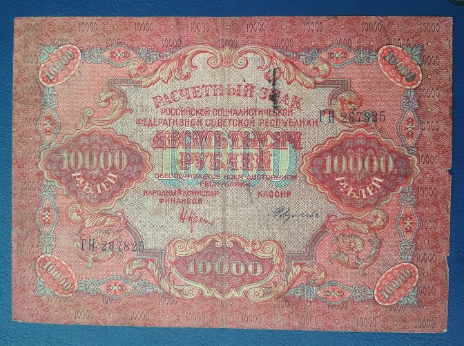 QUOTE(Серж-ант. @ Oct 4 2025, 22:01) 5,10 и 50 тысяч похуже- рублей по 200, может пионеры и побольше дадут, но по сути состояние неколлекционное. 25 и 50 тысяч получше, рублей по 700, может и до 1000 Подписи кассиров имеют значение для коллекционеров собирающих по подписям и на торгах за какого-то кассира могут накидать больше чем за другого ( я по кассирам особо информацию не собирал). Кроме того цена зависит и от ВЗ на бонах. Ну и состояние... У Вас получше нет ничего? Может у меня бы интерес к покупке появился... Спасибо за оценку Получше? Ну я же выкладываю все, что есть. Смотрите, может, там будет получше. Далее банкноты 1919 года пойдут. -------------------- ! Z !