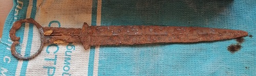 QUOTE(Пал @ Sep 22 2025, 23:22) Здравствуйте! Имеется такой акинак. Начал чистить механически и с рукоятки отвалился кусочек ржавщины, образовалась интересная картинка. Смотрим фото. На форуме Химиков подсказали что это Пирит (дисульфид железа, FeS2). По внешнему виду и блеску он напоминает золото. Может образоваться при длительном контакте соединений железа(II) с органическими остатками без доступа воздуха. Меч мог находиться рядом с телом/в теле хозяина или его жертвы. Это называется псевдоморфизм. Получается, если это действительно так, то на рукоятке были какие то органические остатки человека, которые со временем были замещены минералом. Небольшие кристаллики , напоминающие слюду, только желтого золотого цвета находились внутри ржавого образования, которое было полым, часть из них прилипает к стенкам, на фото видно. Возможно данным псевдоморфозным образованием, что является очень редким явлением, покрыты еще участки на мече. Вот что теперь дальше делать? Химики молчат. Может кто встречался с данным явлением и что посоветует? Почему вы думаете, что это именно остатки человека? Это может быть любая органика. Насколько я знаю, научную ценность представляет псевдоморфное замещение органических остатков, например куска ткани/кожи/дерева и т.д. с сохранением их стурктуры, которая легко распознается. В вашем случае этого не видно, а есть просто коррозионные вздутия, внутри которых пирит. Вы, конечно можете их сохранить, если они вам нравятся с эстетической стороны, но имхо практической и научной пользы от них нет. Я бы их убрал. -------------------- Реставратор по металлу, кости