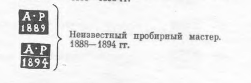 А.Р -Пробирный мастер Романов А., 1886-1894гг., в 1895 году переведен в Ригу.